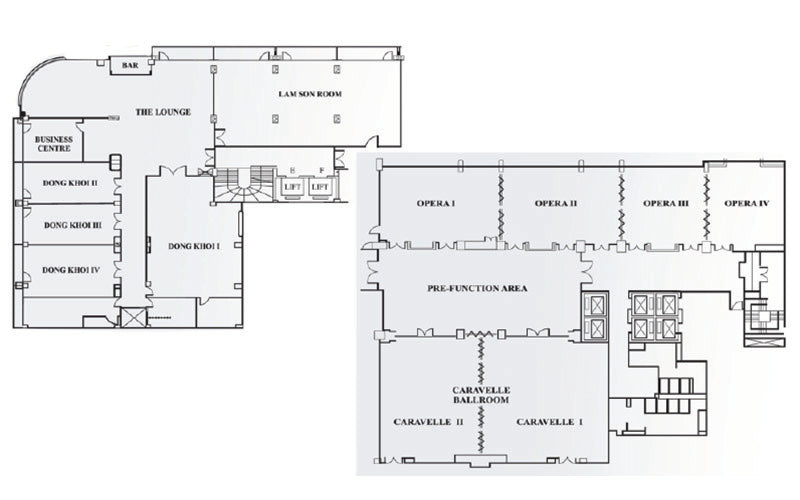 International meals are served in a casual buffet style at Restaurant Nineteen, or in fine dining style at Reflections Restaurant. Cocktails and wine are available at Saigon Saigon Rooftop Bar and Martini Bar. Grab a cup of coffee/tea, and some pastries at Café de l’Opera when you're on the go.