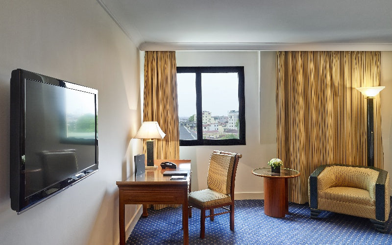 Featuring local handcrafted furniture, all units are elegantly decorated in pleasant neutral pallete with accent of light brown, blue or red. All large units feature air conditioning, windows offering plenty of natural lights and an ample work space. A wardrobe with ironing facilities, flat-screen TV and mini-bar are included. Private bathroom comes with either a bathtub or shower, as well as a hairdryer.